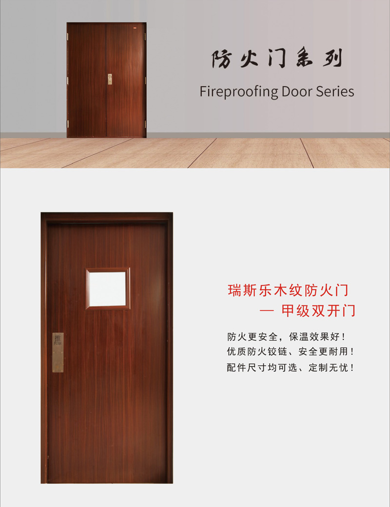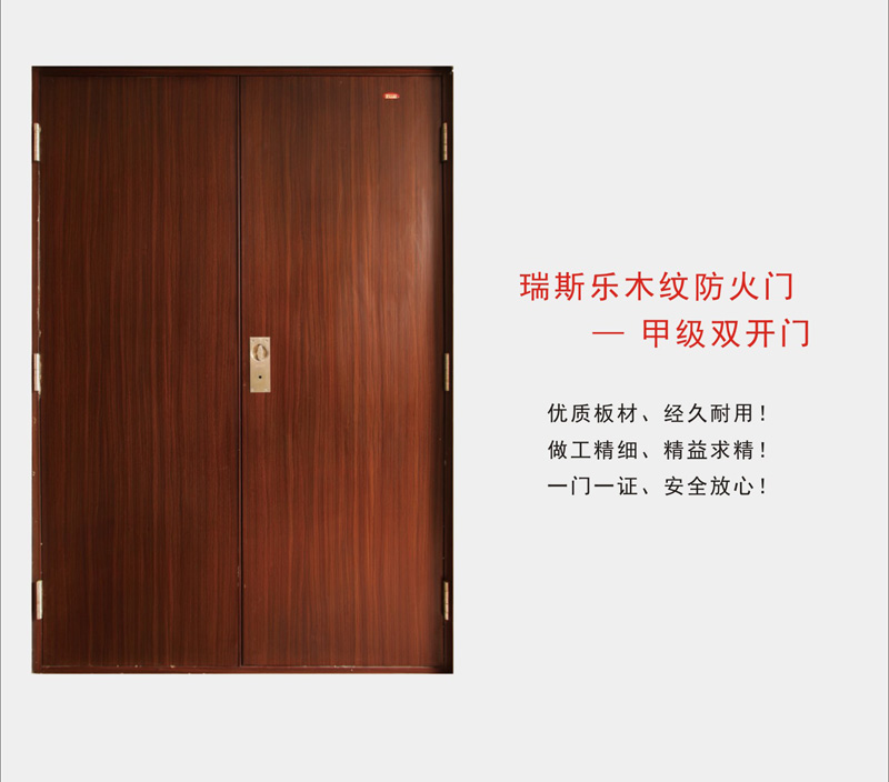 - 特性:瑞思樂木紋鋼質(zhì)門通過木紋轉(zhuǎn)印技術(shù),讓鋼質(zhì)防火門也能具有木紋的外觀,適用更多風(fēng)格的防火場(chǎng)所。